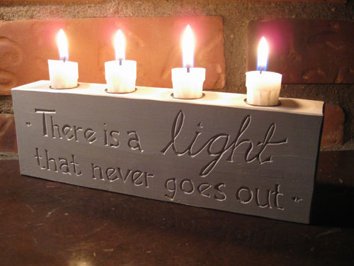 Om man gör sin egen ljusstake kan man välja att göra den antingen lite mer otraditionell och då inte i första hand ge den en utseende som bara passar till jul. Eller så väljer man att göra den traditionell och skär in texten god jul och målar den röd.
