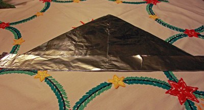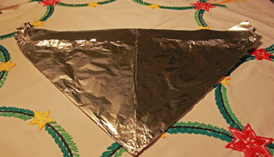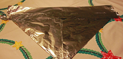 … vänd på hatten och vik upp nederkanten på andra sidan. Ta på dig hatten. Nu är du rustad och skyddad från skadlig EMC-strålning som kan uppkomma vid jordens undergång.