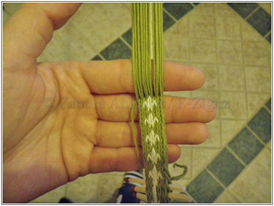 På bloggen E-Zignz finns en pedagogisk steg-för-steg beskrivning hur man väver brickväda band. Nu har vi kommit fram till själva vävningen.